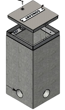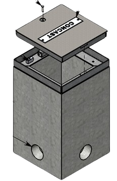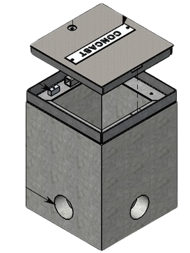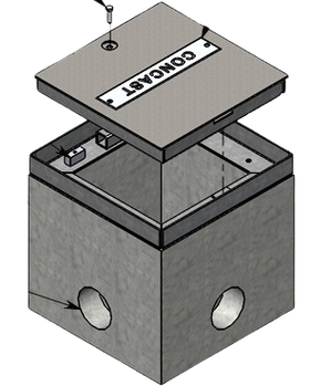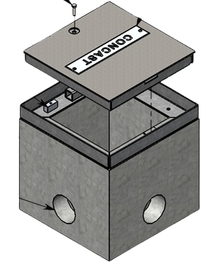 Concast concrete handhole units are a great precast option when you need a small access box with no bottom. These units have a full H-20 traffic rating. The handholes include a galvanized steel treadplate cover which comes standard with ID plates and pentahead locking capabilities to make your handhole units tamper-proof. Removal tools are shipped with each FHR order. FHRSL handholes utilize SureLock bolts for maximum security.