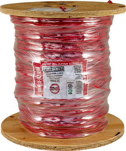 Fire Alarm Cable, 14/2, Solid, Unshielded , FPLP (Plenum), 1000ft Spool, Red